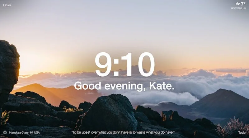 Momentum helps you stay focused on your daily goals. Whenever you open a new tab, your personalized Momentum dashboard pops up. You can set a daily intention and add items to your to-do list. (I prefer Any.do for managing my to-do list.)
