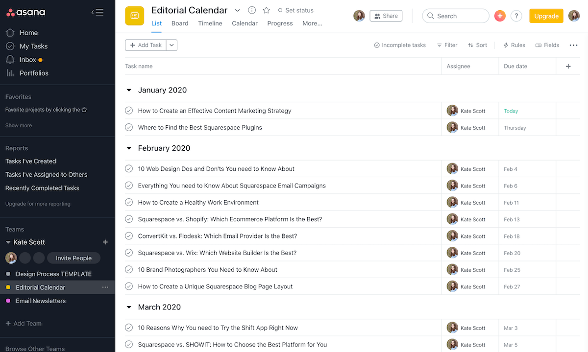 I love Asana because itβs free and you can view your content schedule in list, board, or calendar view.