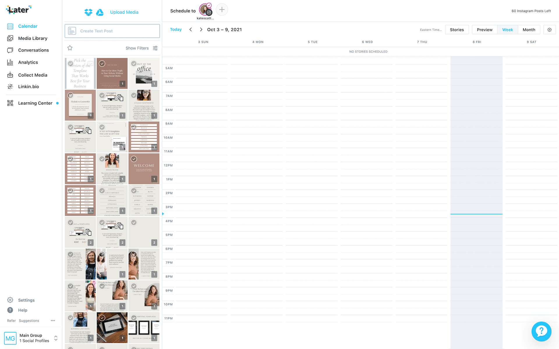 Later is my favorite social media scheduling tool for Instagram. It also allows you to schedule content on other platforms—Twitter, Facebook, LinkedIn, TikTok, and Pinterest—but Instagram is the main focus and it’s the only thing I use it for.