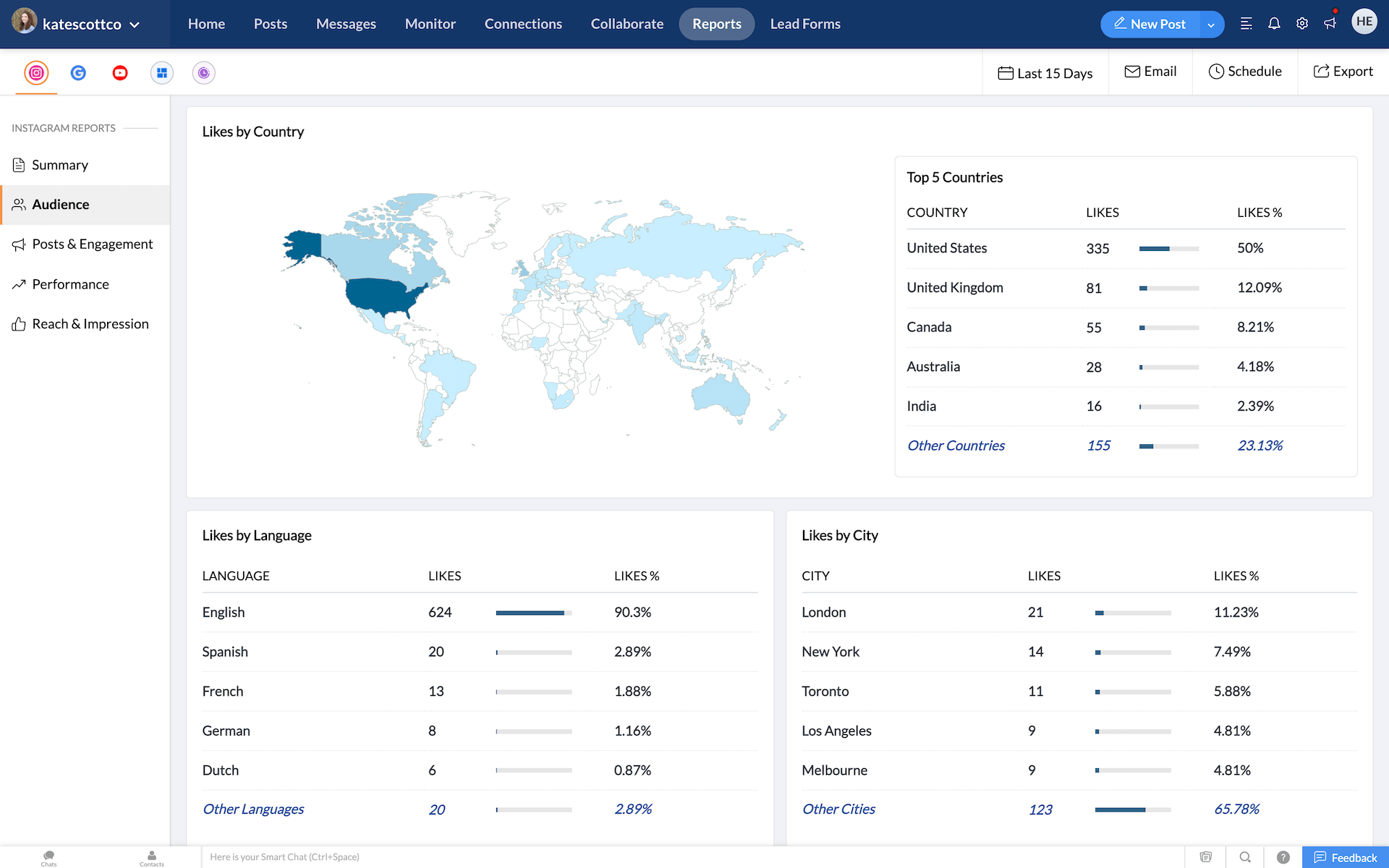 Sprout Social has advanced analytics to satisfy everyone from solopreneurs to big brands. You can view post performance across social networks, see reports on each social media profile, track competitors, and even measure the results of your Instagram, Facebook, Twitter, and LinkedIn ads.